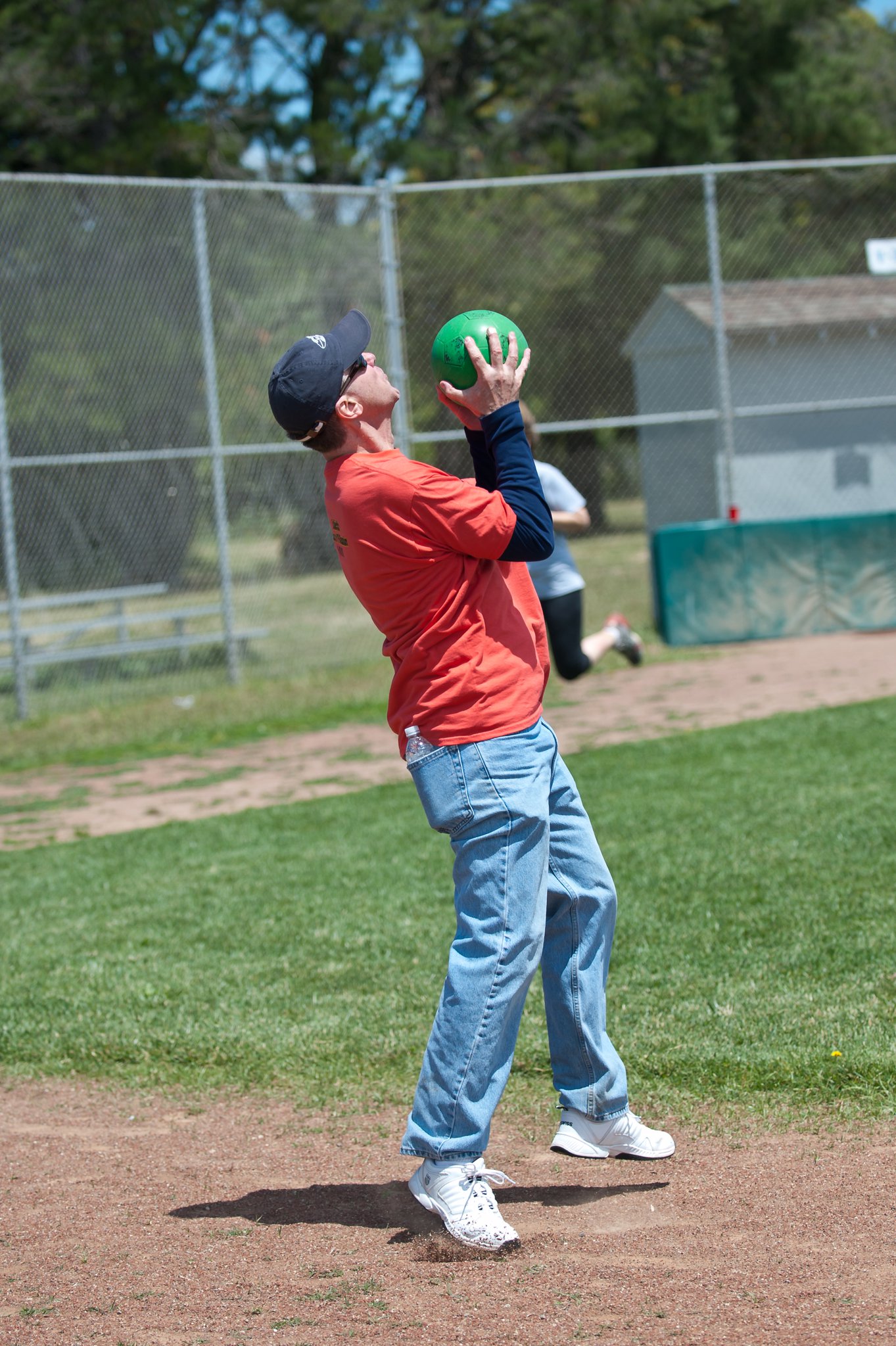 picture which Ando then used to make t-shirts. These were used to decipher the 4 teams. Unfortunately, the winds did not agree with our plan. Luckily, there was a back up plan. Kickball! With the keg playing permanent 2nd baseman. After my team totally kicked ass, we decided to start bbqing. We ate, checked out the playground, ran some obstacle courses and combed our hair for the class pic. What a wonderful day! But wait, there’s more!